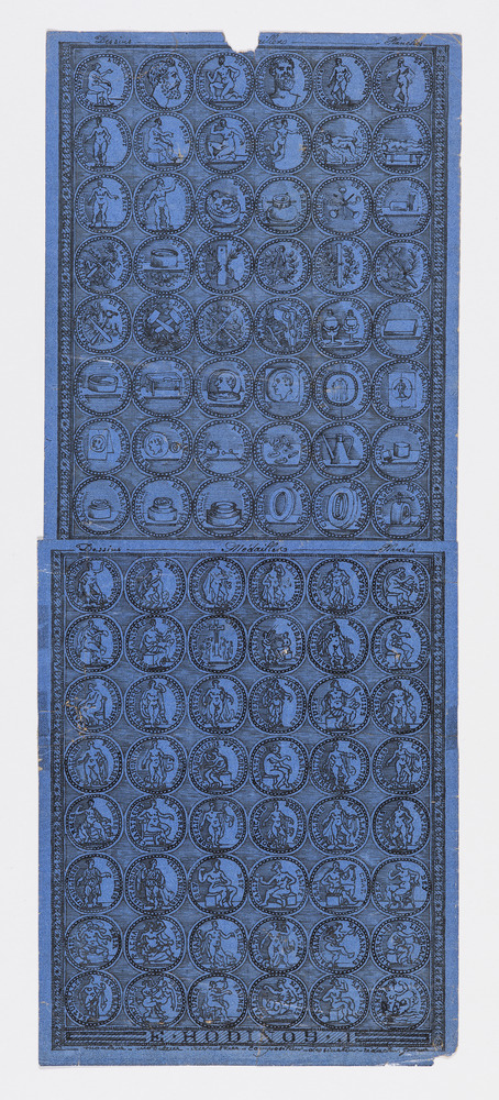 Dessin Les deux feuilles sont assemblées par collage sur leurs bords horizontaux Encre sur deux feuilles de papier bleu au recto et beige au verso